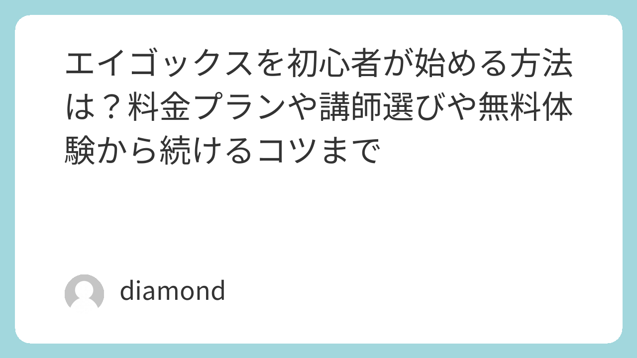 エイゴックスの料金プランを初心者向けに選びやすく整理