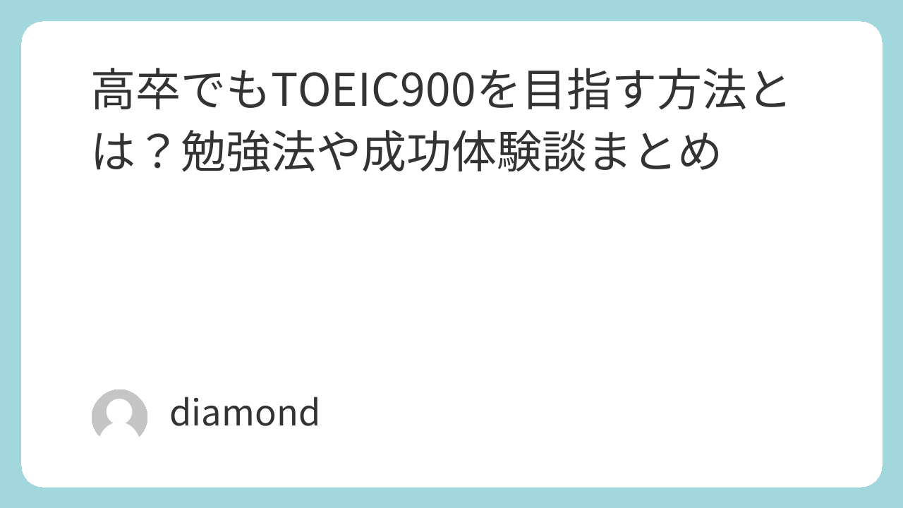高卒でもTOEICで900点を取ることは、難しいながらも不可能ではありません。