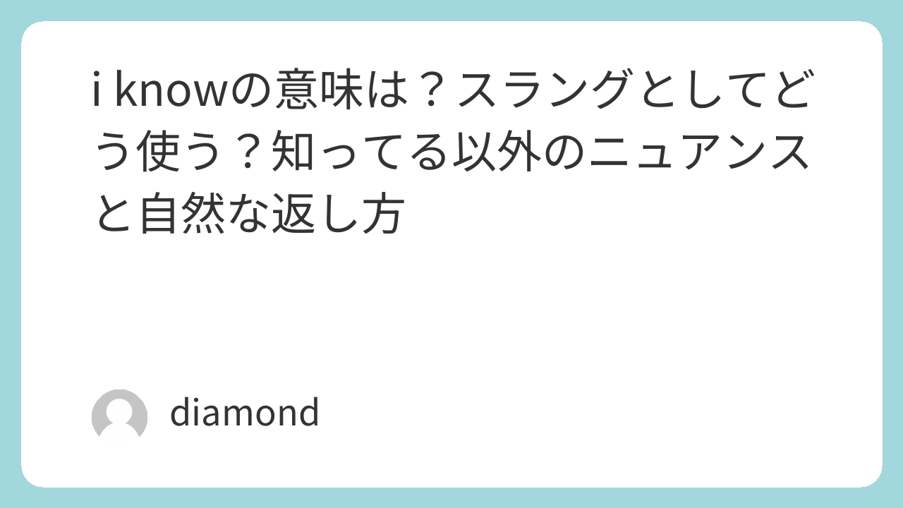 i know がスラングのように見えるのは、辞書の意味が変わるからというより、会話の温度感が強く出るからです。