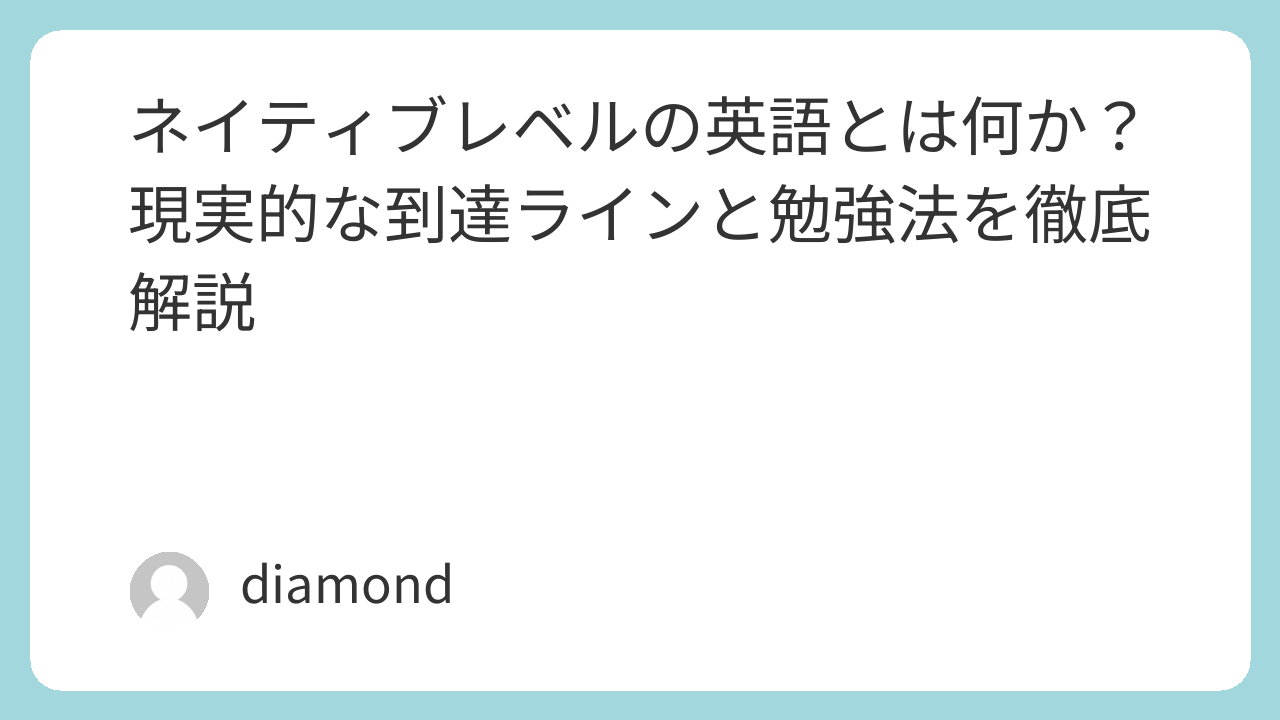 ネイティブレベルの英語は魅力的な言葉ですが、定義があいまいなまま追うと学習がぶれやすくなります。