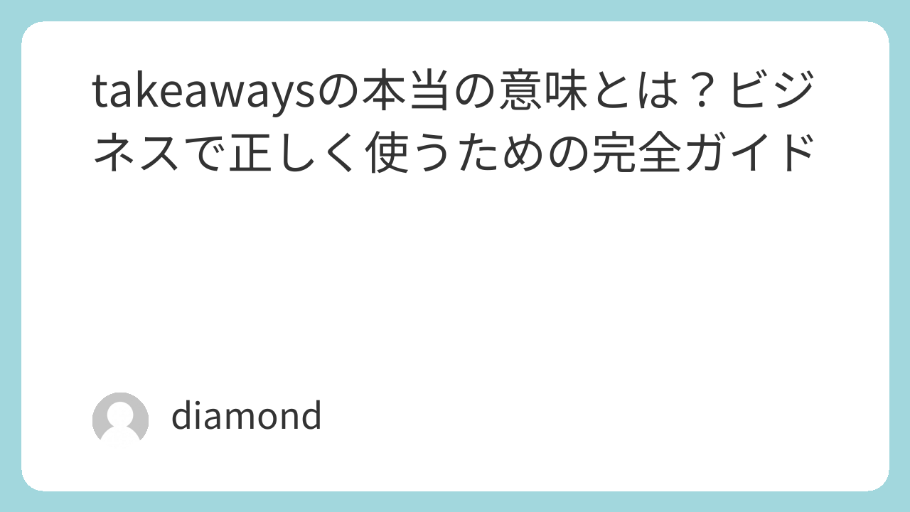 読み終えるころには、英語の資料や会話でtakeawaysが出ても迷わず理解でき、自分でも自然に使える状態を目指せます。